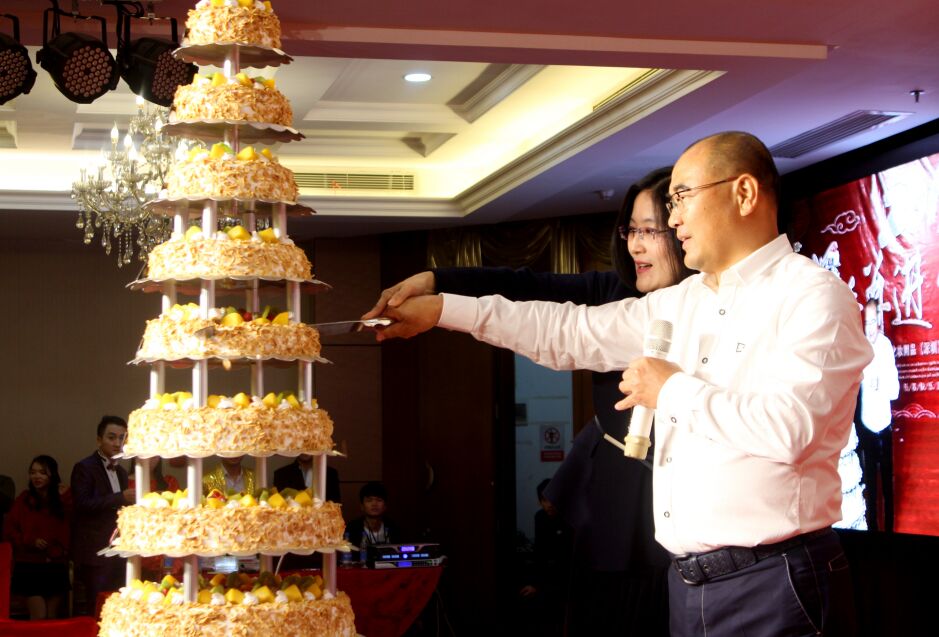 (圖為雅香麗董事長與副總經(jīng)理喜開蛋糕,寓意2019年的市場份額更上一層樓)