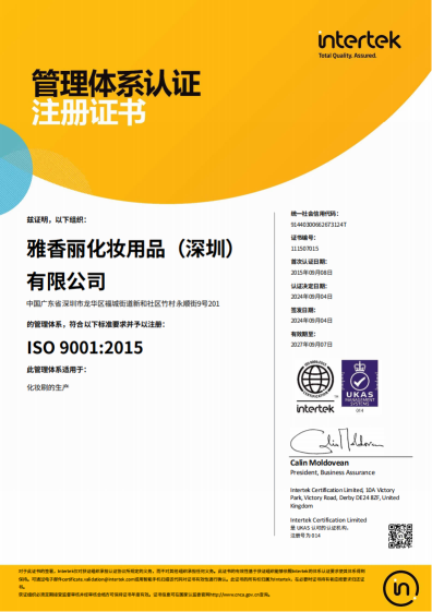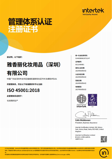 熱烈慶祝雅香麗化妝用品(深圳)有限公司榮獲質(zhì)量、環(huán)境和職業(yè)健康安全管理體系認(rèn)證!??!
