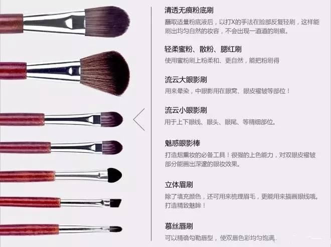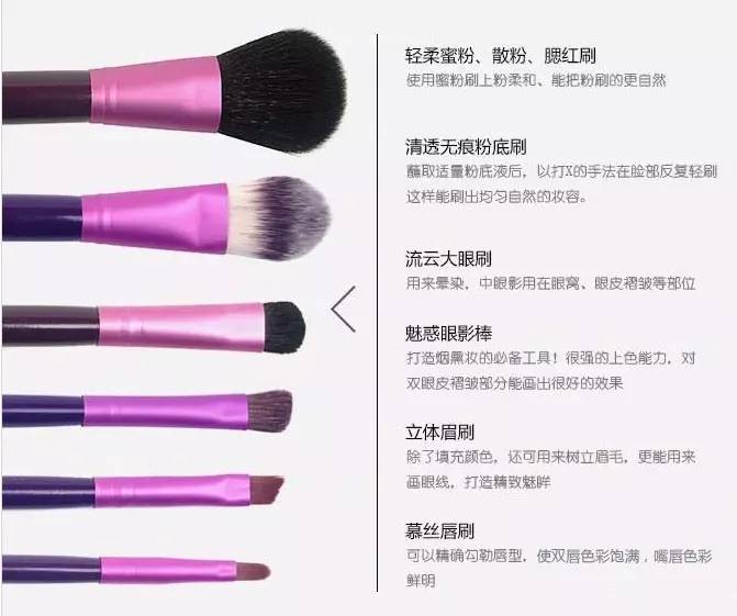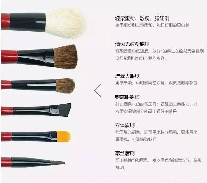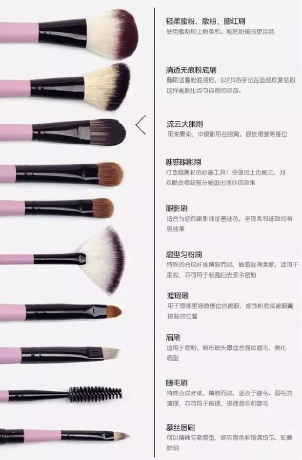 化妝刷是我們常用的化妝工具,尤其是彩妝使用化妝刷才能夠化出即快速又好看的妝,但是由于化妝刷套裝的模樣大同小異,只不過是形狀和大小有小小區(qū)別,對于新手來說區(qū)分化妝的用途簡直是噩夢。那么怎樣才能記住化妝刷的用途呢,下面小編為大家詳細介紹一下。